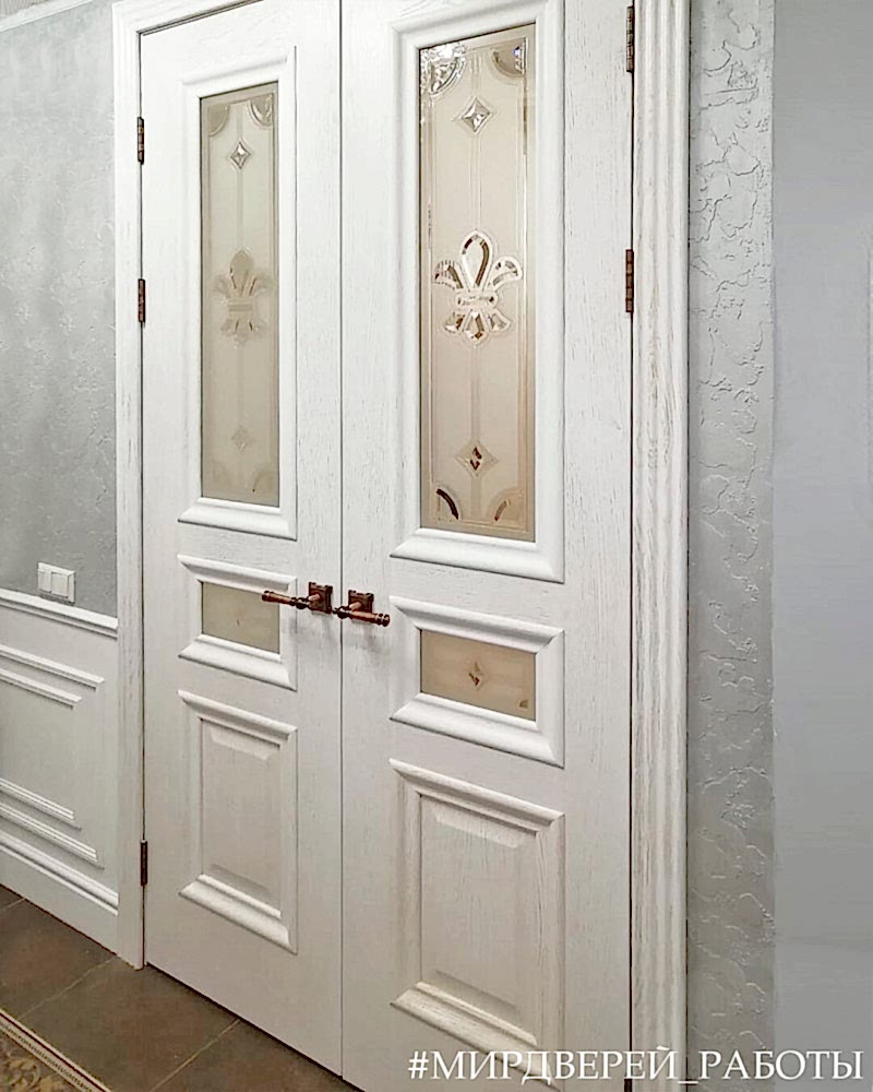 Двери серии "CLASSIC"оформляются шпоном 13 цветовых оттенков: от белого тона слоновой кости до американского ореха и черного дуба, патинированного серебром. Pin Up лаком подчеркивает естественный рисунок дерева, придает изделию изысканный вид, сохраняет поверхность от повреждений. Вставки из матированного стекла, украшенного гравировкой и тонким изящным рисунком, обрамляются багетом из березы. Широкая цветовая гамма полотен и разнообразие витражной отделки позволяет подобрать подходящую дверь, как для дома, так и для солидного офиса.