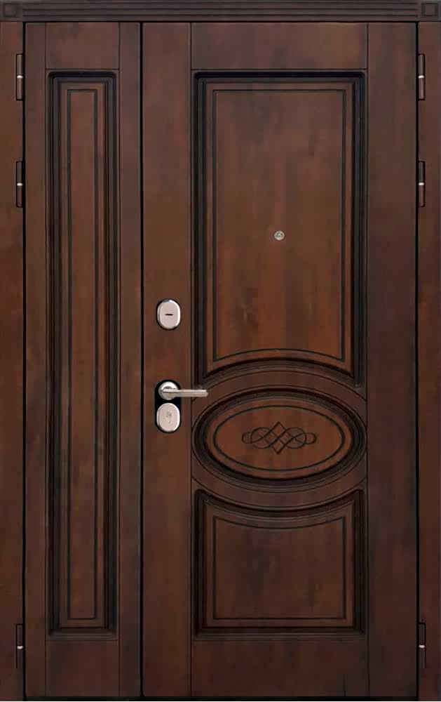 Компания «Мир Дверей» предлагает металлические входные двери собственного производства «FARAON» (производство г. Йошкар-Ола).Эксклюзивная двухпольная модель «Эксклюзив 9» разработана под широкий проем. Pin Up имеет две разноразмерные активные створки. Полотно теплоизолировано базальтовой плитой. Два контура уплотнения препятствуют сквознякам, проникновению внутрь пыли и запахов. В отделке использованы объемные панели МДФ с защитным покрытием Винорит, остекление, кованая решетка. Дверь комплектуется замком KALE.