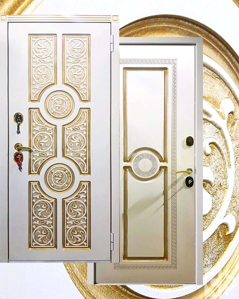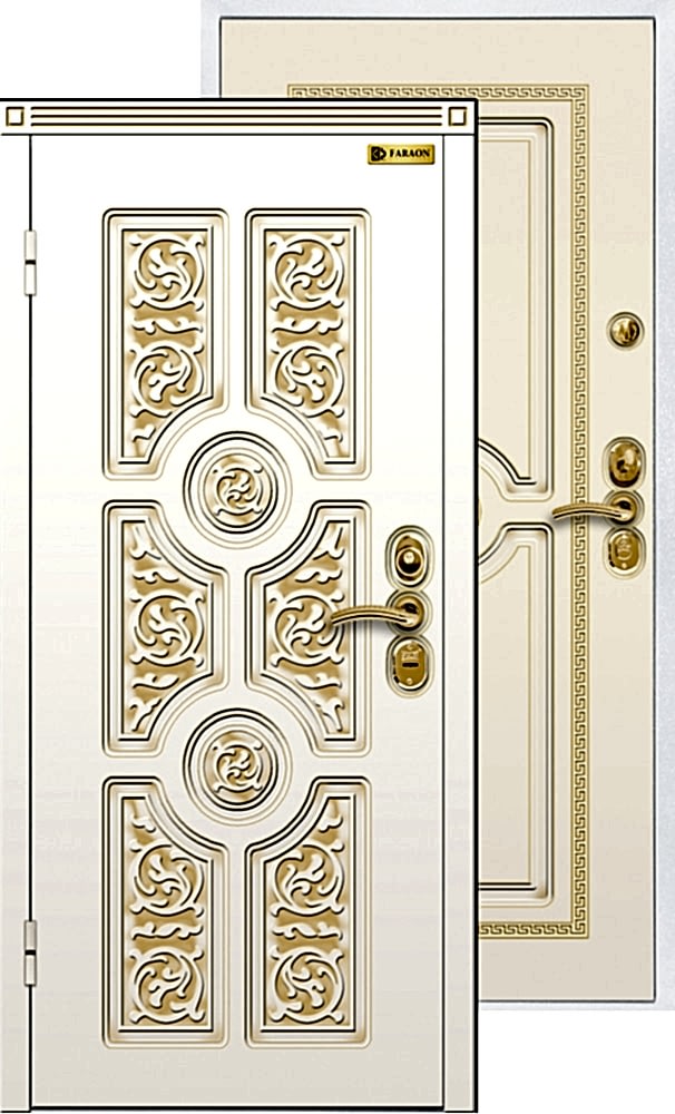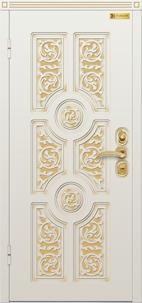 Компания «Мир Дверей» предлагает металлические входные двери собственного производства «FARAON» (производство г. Йошкар-Ола).Модель «Версаче» выполнена из металлопрофиля и стального Pin Up Полотно толщиной 96 мм утеплено базальтовой плитой. Два контура уплотнения препятствуют сквознякам, проникновению пыли и запахов. Полотно навешено на подшипниковые петли. Снаружи и изнутри дверь облицована декоративными фрезерованными панелями из МДФ, укрытыми пленкой винорит.